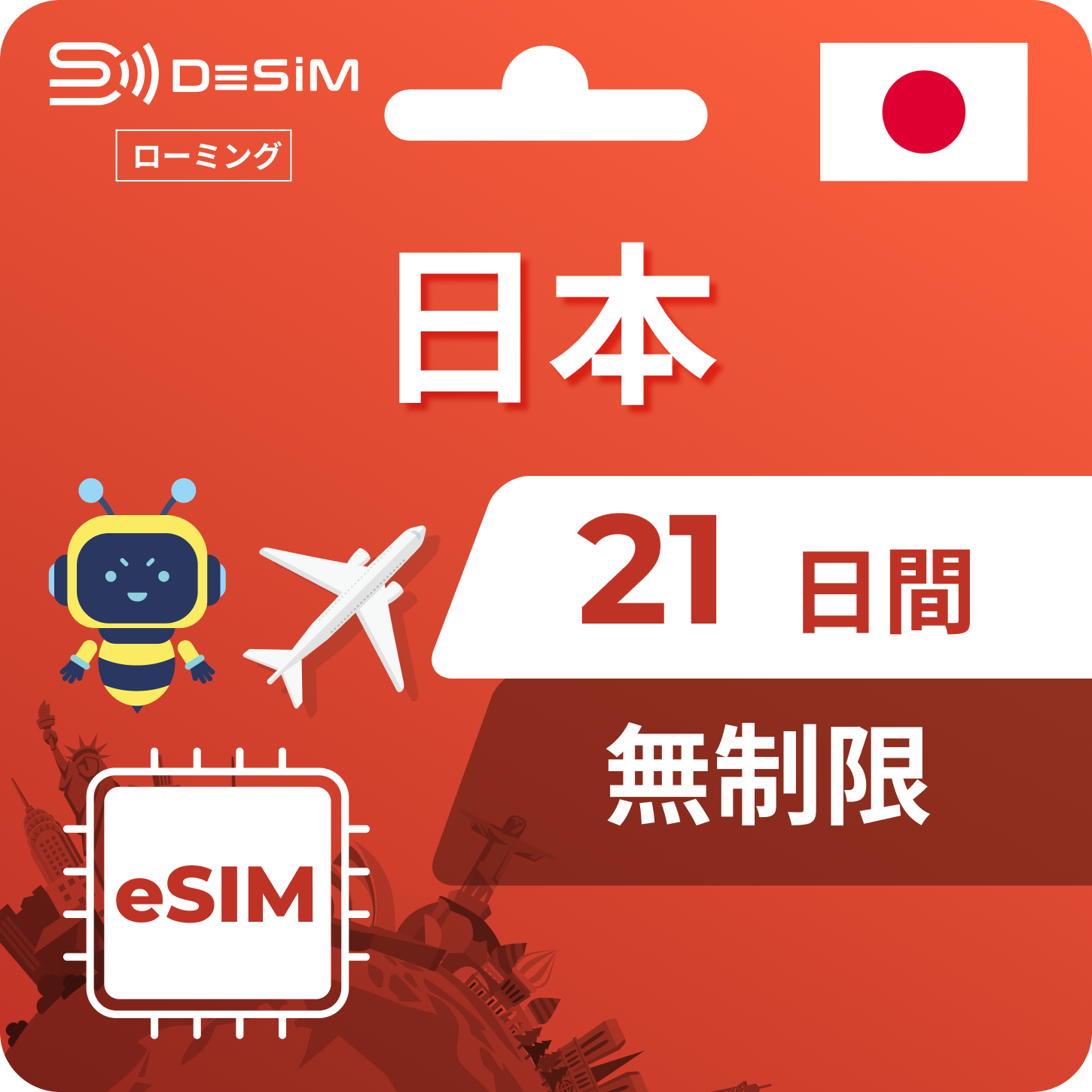 対応エリア: 東京、京都、広島、関東、長崎、大阪、沖縄などの主要観光地をはじめ、日本全国で安定かつ高速なインターネット接続をご利用いただけます。 利点: 2025年4月時点のOpensignal®レポートによると、ドコモは5Gダウンロード速度でトップの評価を受けており、ソフトバンクは5Gの利用可能性で第1位となっています。当社のeSIMは両キャリアに対応し、日本全国で信頼できる接続を提供します。