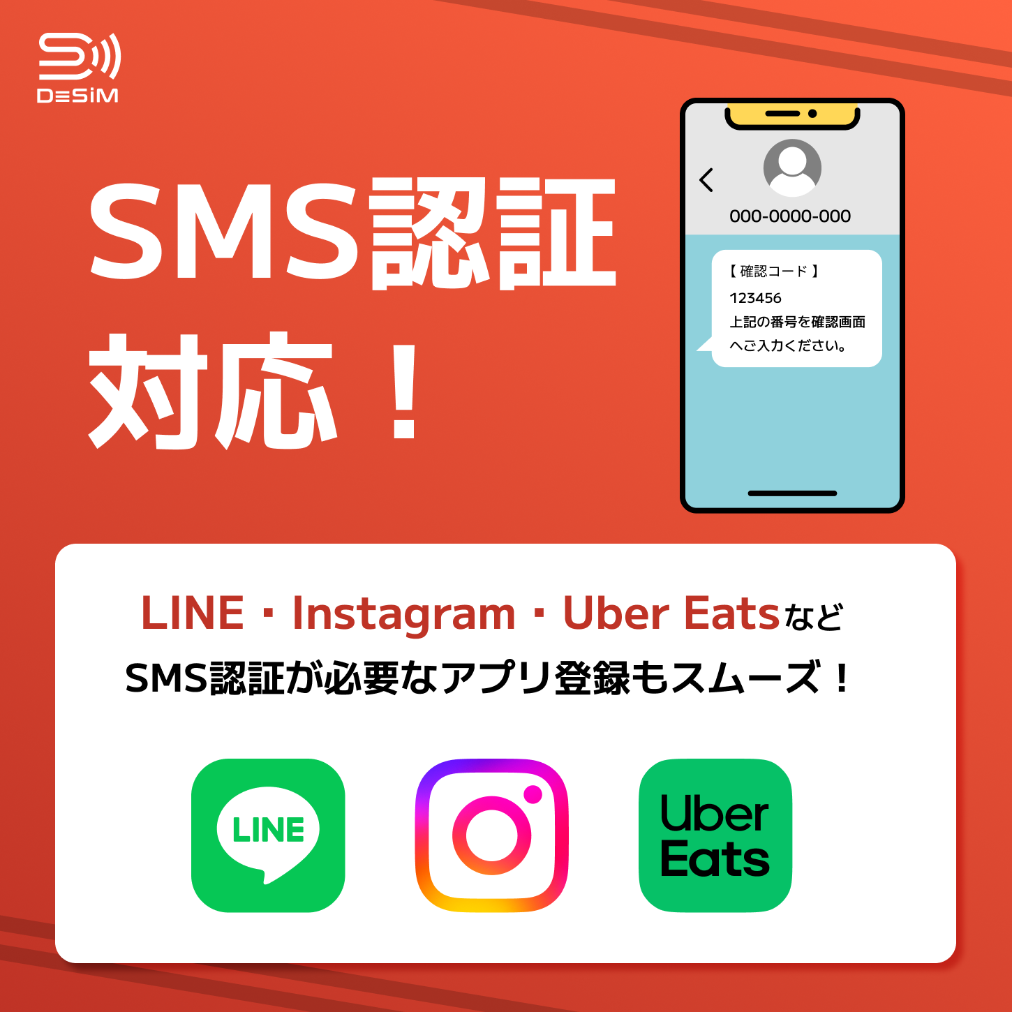 SMS受信機能がついていますので、LINE やInstagramやUber Eats等SMS認証が必要なアプリを単に登録することが可能です。