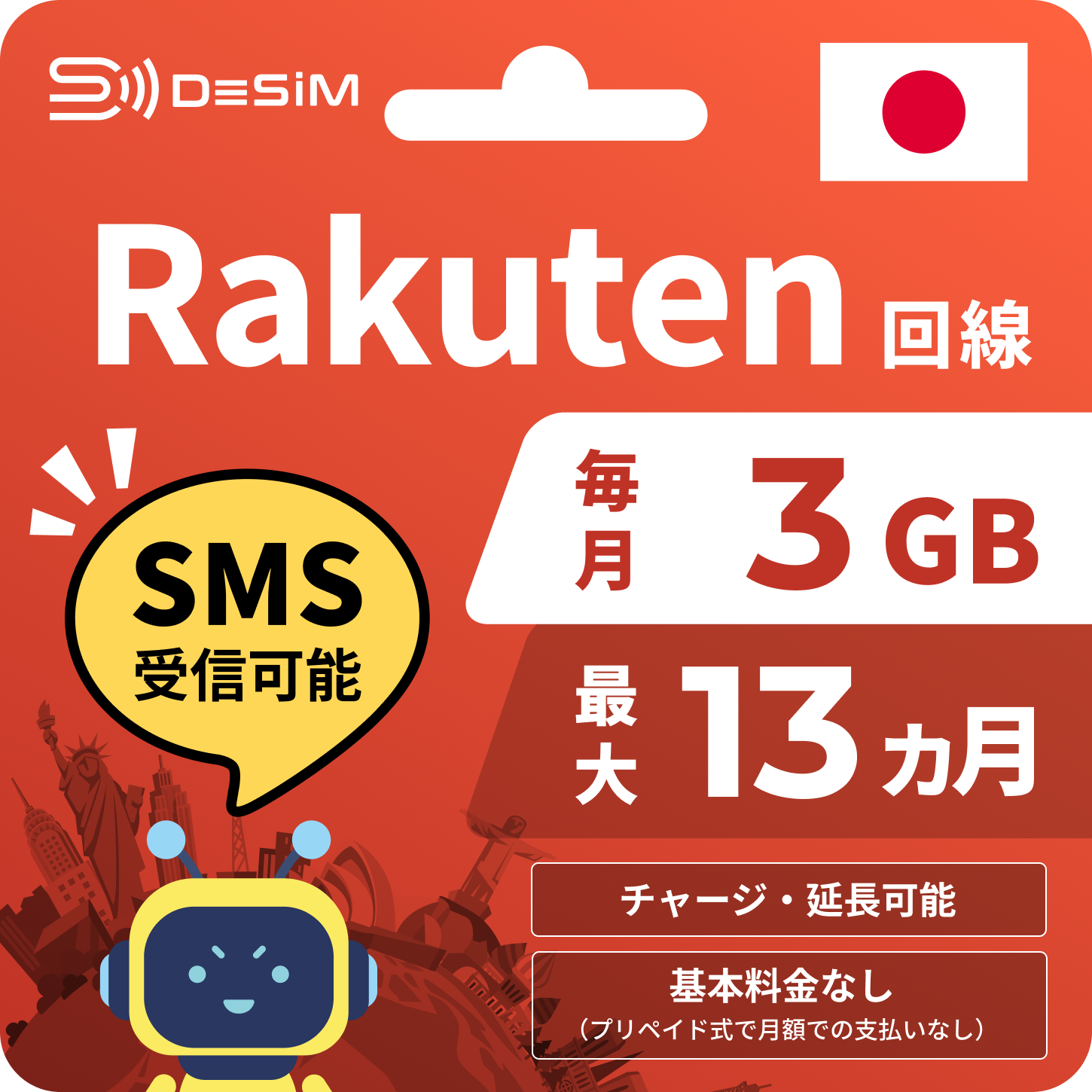 【設定について】 楽天モバイル回線に対応した端末はAPNが自動設定されます。SIMを挿入した状態で端末の再起動をすることで設定されますのでので面倒な設定無しにご利用いただくことができます。 【SMS認証可能】 ・SMS受信機能がついていますので、LINEやInstaramやUber Eats等SMS認証が必要なアブリを簡単に登録することが可能です。 【RAKUTENモバイル回線使用のプリペイドSIMカード】 ・この商品は、最長13ヶ月間ご利用いただけるRAKUTEN回線のプリペイド高速データ通信専用SIMカードです。RAKUTEN回線エリアでは5G/4G高速データ通信を最長3GB/月までご利用いただけます。3GB/月利用後は通信速度が200bpに低速化されますが,毎月1日に通信速度が通常に戻ります。このSIMカードでは音声通話はご利用いただけません。 ・パートナー回線につきパートナー回線エリアでは最長1GBまで4G高速データ通信がご利用いたたけますが、国内での高速データ量はRAKUTEN回線、パートナー回期合計で最長3GBです。例えば、RAKUTEN回線エリアで2.5GBをご利用いたたいた場合、パートナー回線エリアで0.5GBをご利用いたたけます。またパートナー回線はRAKUTENとパートナーのローミング契約終了によりご利用いたたけなくなる場合がございます。 ・海外でのご利用につき海外ではRAKUTEN回線が使用できるエリアにて最長1GBまでご利用いたたけます。
