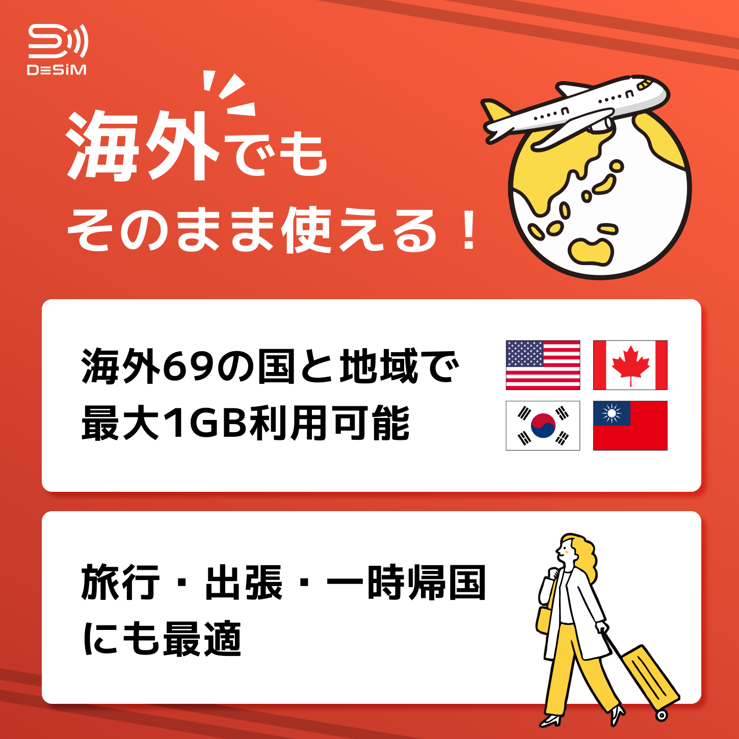 海外でも楽天回線が使用できるエリアにて最大1GBまでご利用いただけます。2023年3月時点で、下記の69の国と地域で利用が可能です。商品の説明欄に詳細がございますのであわせてご確認ください。