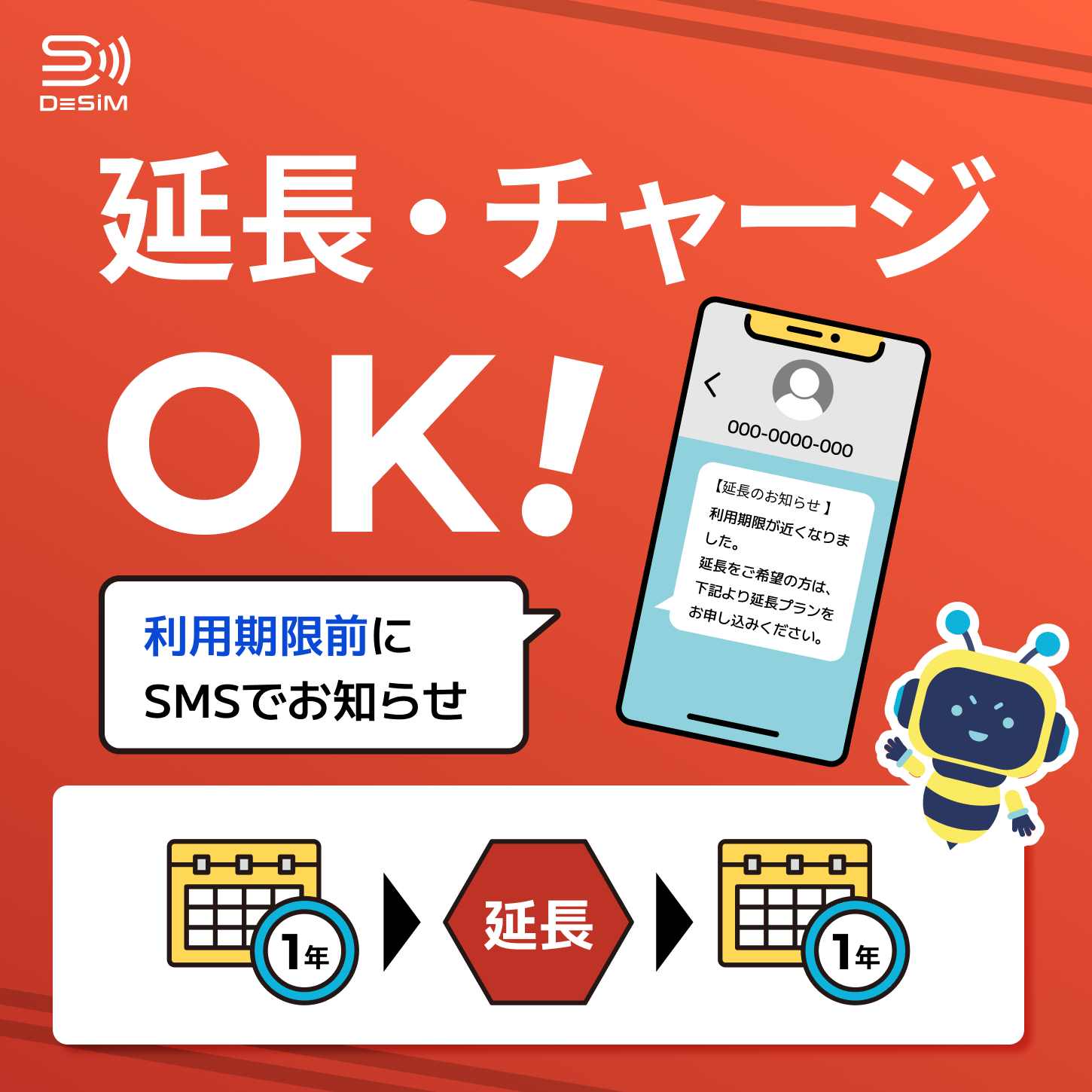 ご利用期限終了の1か月ほど前に送信される、SMSでの延長のご案内からお手続きをいただくか公式サイトの『FITSIMマーケット』から延長が可能です。